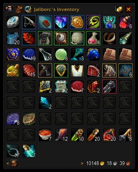 Bagnon – это настраиваемый аддон для замены стандартных сумок в WoW. С помощью данного аддона игрок сможет находить предметы максимально быстро и легко. Помимо базовой функциональности «все в одном», Bagnon предоставляет такие функции, как: