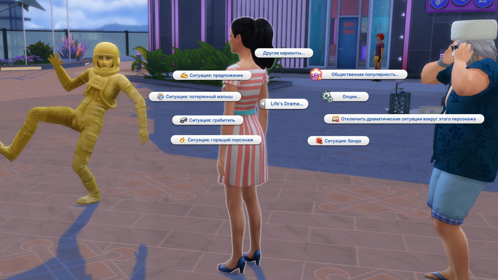 - Вы можете сами запустить любую ситуацию. Для этого нажмите на персонажа -> Life’s Drama -> “Название ситуации”.